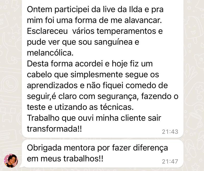 Cabeleireira há mais 25 anos, comecei do zero em uma cidade com menos de 10.000 habitantes e hoje tenho formações nacionais e internacionais na área.